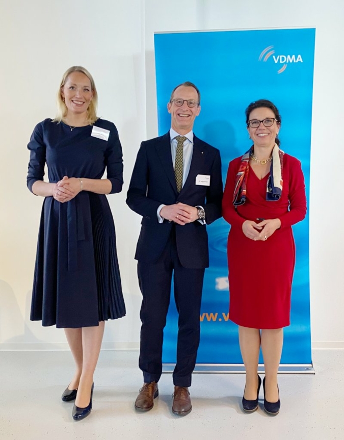 Vorsitzende und stellvertretende Vorsitzende des VDMA Textilmaschinenbau (v. l.): Verena Thies, Dr. Janpeter Horn und Regina Brückner. © VDMA